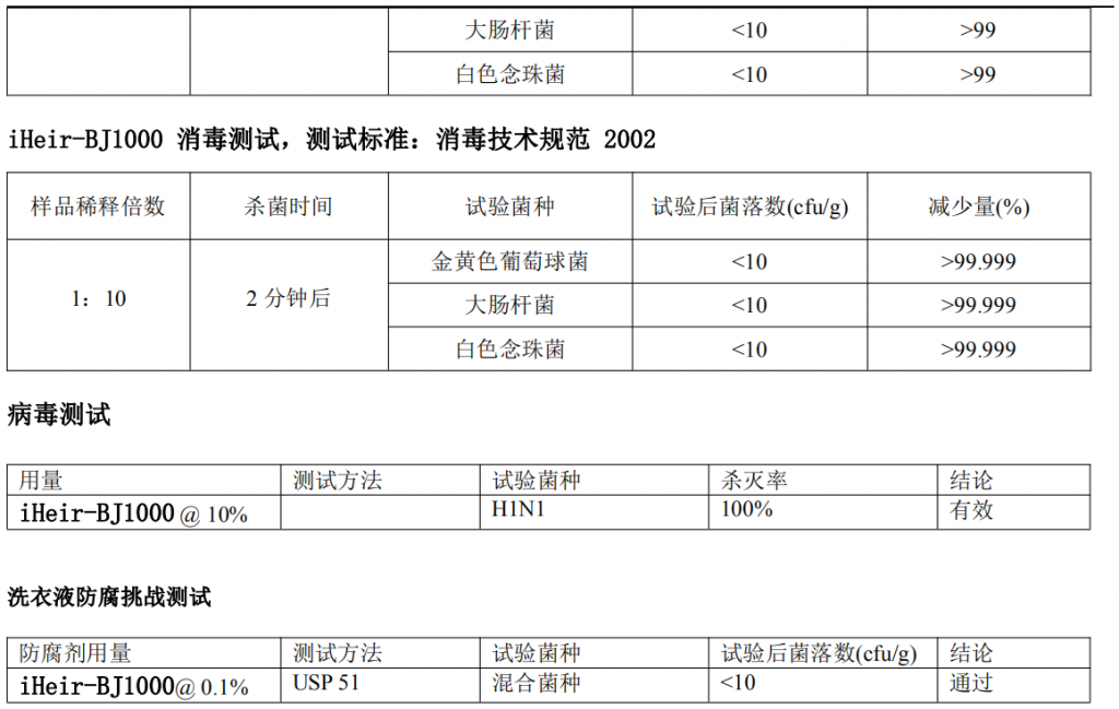 洗衣液中添加 0.2% iHeir-BJ1000,測試標準:QB/T 2738-2012