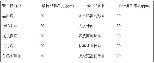 5.對(duì)常見腐敗及霉變微生物的最低抑制濃度(MIC)